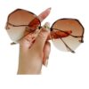 Roshfort Sunglasses for Women uv400 Protection Goggles for Womens Stylish sunglass for womain with Storage Box Cleaning Cloth Rimless Flower Diamond Cutting Lens Driving Shades for Women (Free Size)