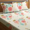 White Geometric 104 TC Microfiber Double Queen Bedsheet with 2 Pillow Covers